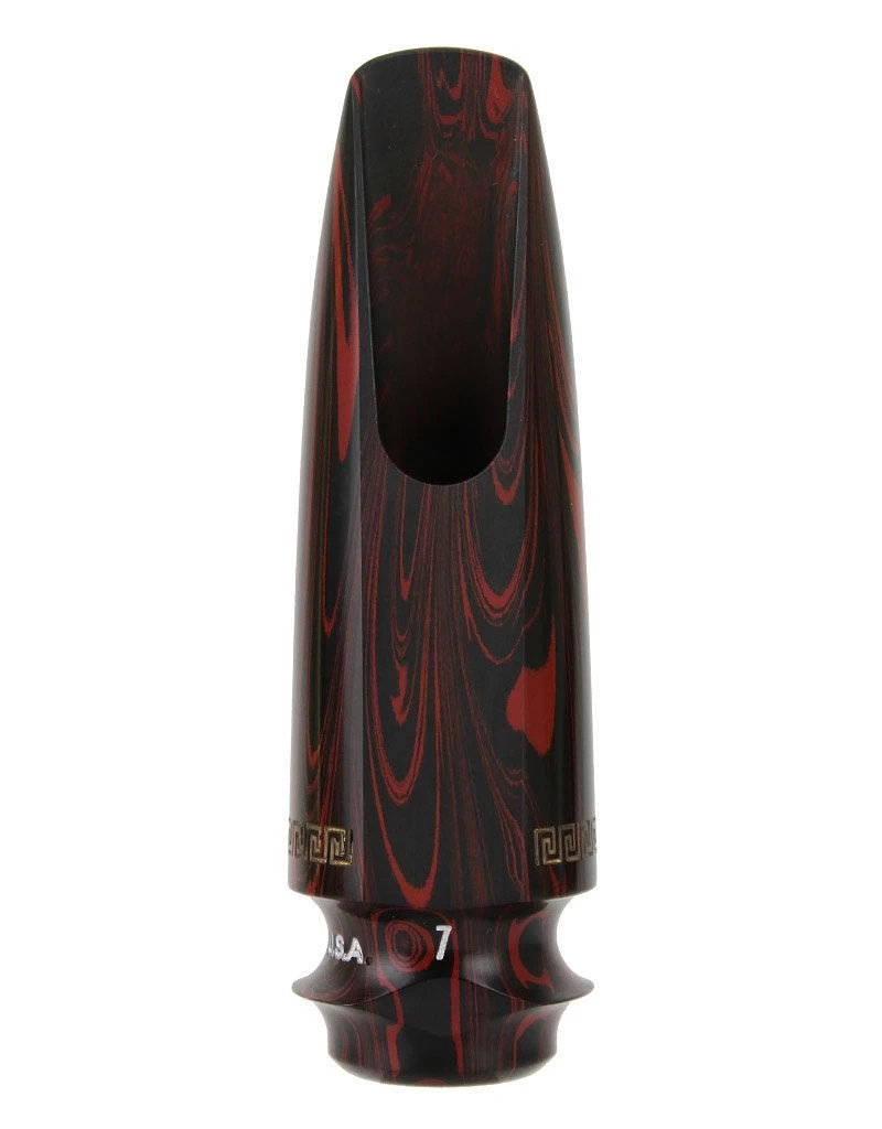 In my many years of playing sax I’ve never come across a mouthpiece that is visually so stunning, with a beautiful swirling red marble finish and a uniquely ornate decorative collar! – Jim Cheek – sax.co.uk