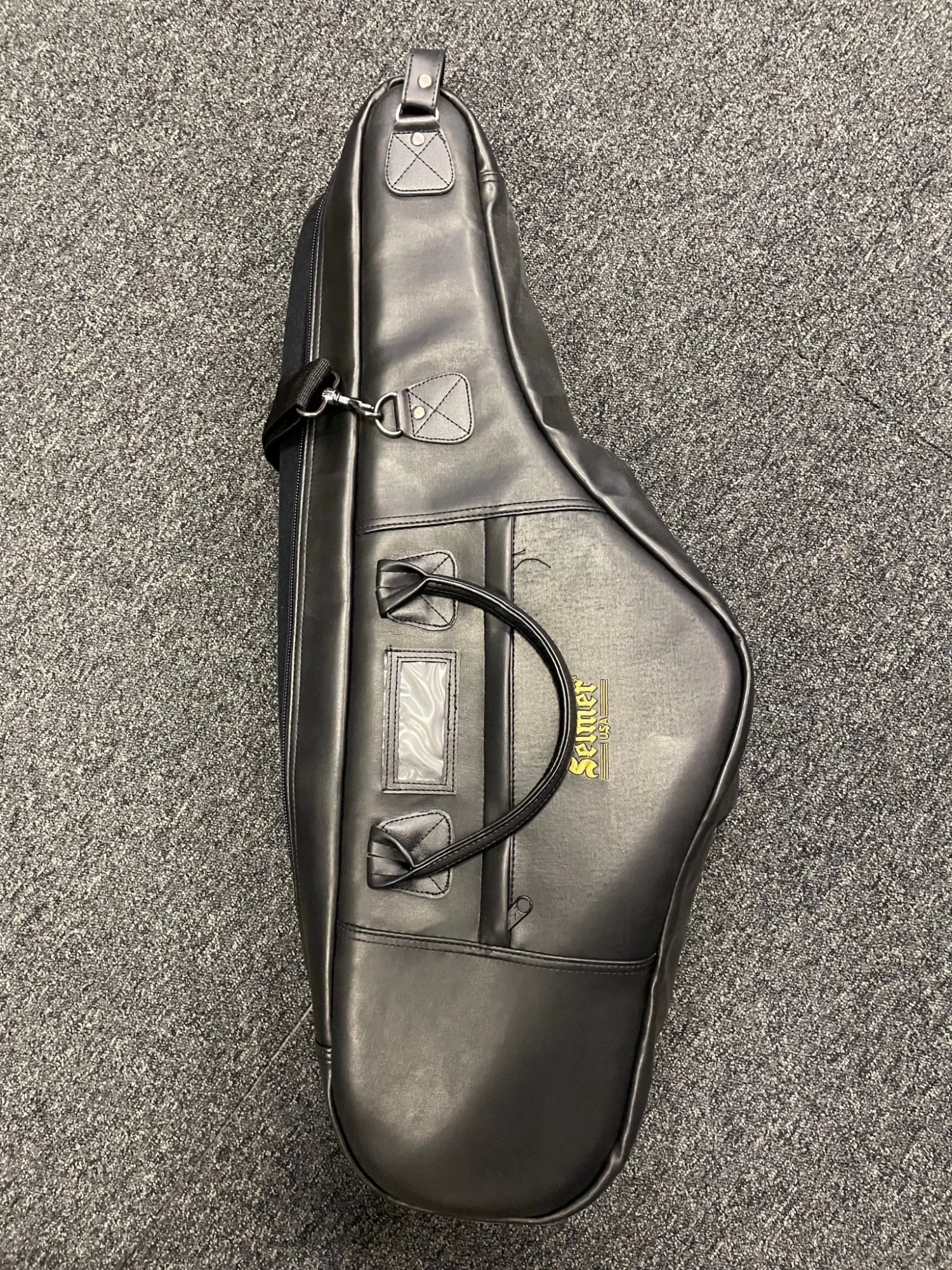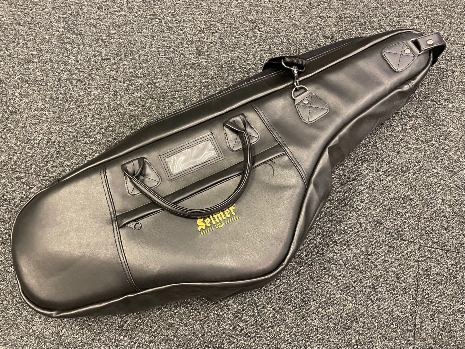 Selmer USA Leather Tenor Sax gig bag with deep foam padding, approximately one inch thick.