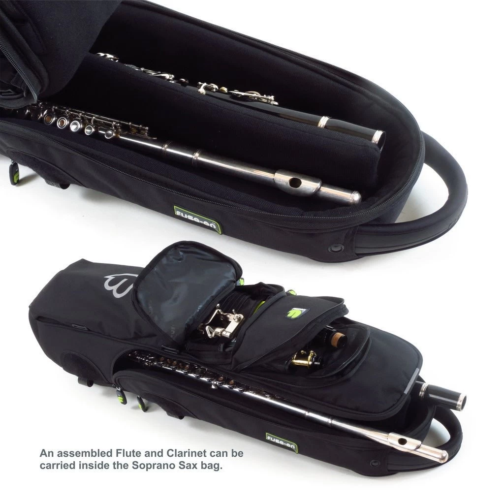 Your Soprano Saxophone will be stored safely inside a 20mm (0.78”) high density lightweight foam shell, the inside of which is made from a soft non-scratch velvet-mix lining. There is a padded divider inside the bag, that can be used to separate and store an assembled Clarinet & Flute. A great idea for the Tenor Sax player, who can either take two Saxophones to a gig or a Tenor Sax and Clarinet & Flute and still have hands free!