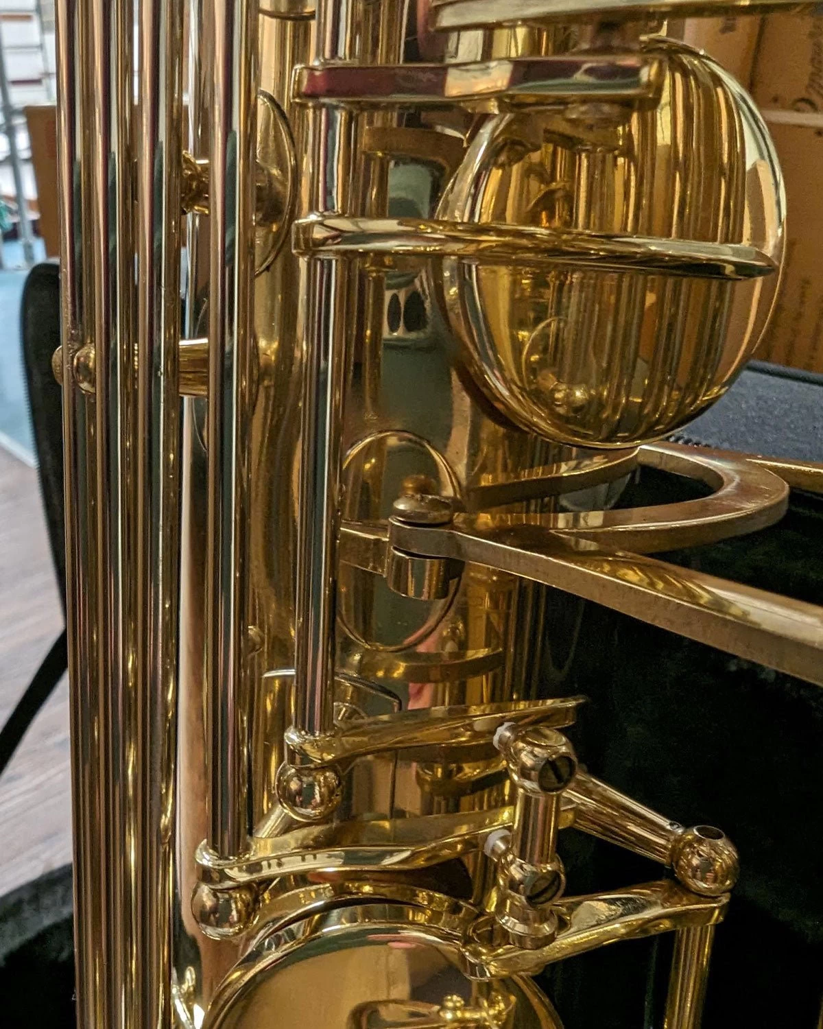 Great opportunity to buy a bargain.聽 This sax has received some transit damage, but is now fully functional having been attended to by our service department.聽 What remains is some denting in a rather hidden area behind the bell to body brace, plus some scratches.聽 See additional product photos.