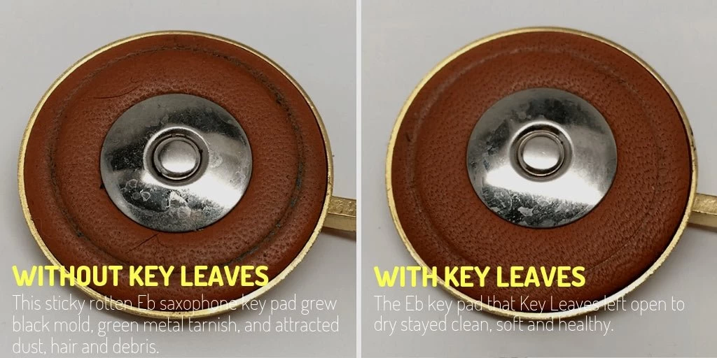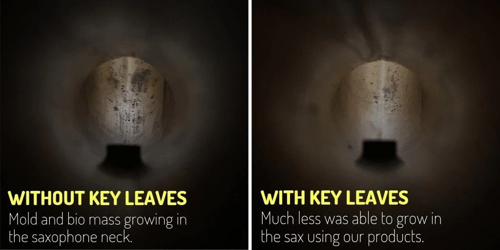 • Key Leaves products increase airflow to the saxophone body and key pads, decreasing growth of bacteria, yeast, virus and fungus that rots your sax and endangers health.