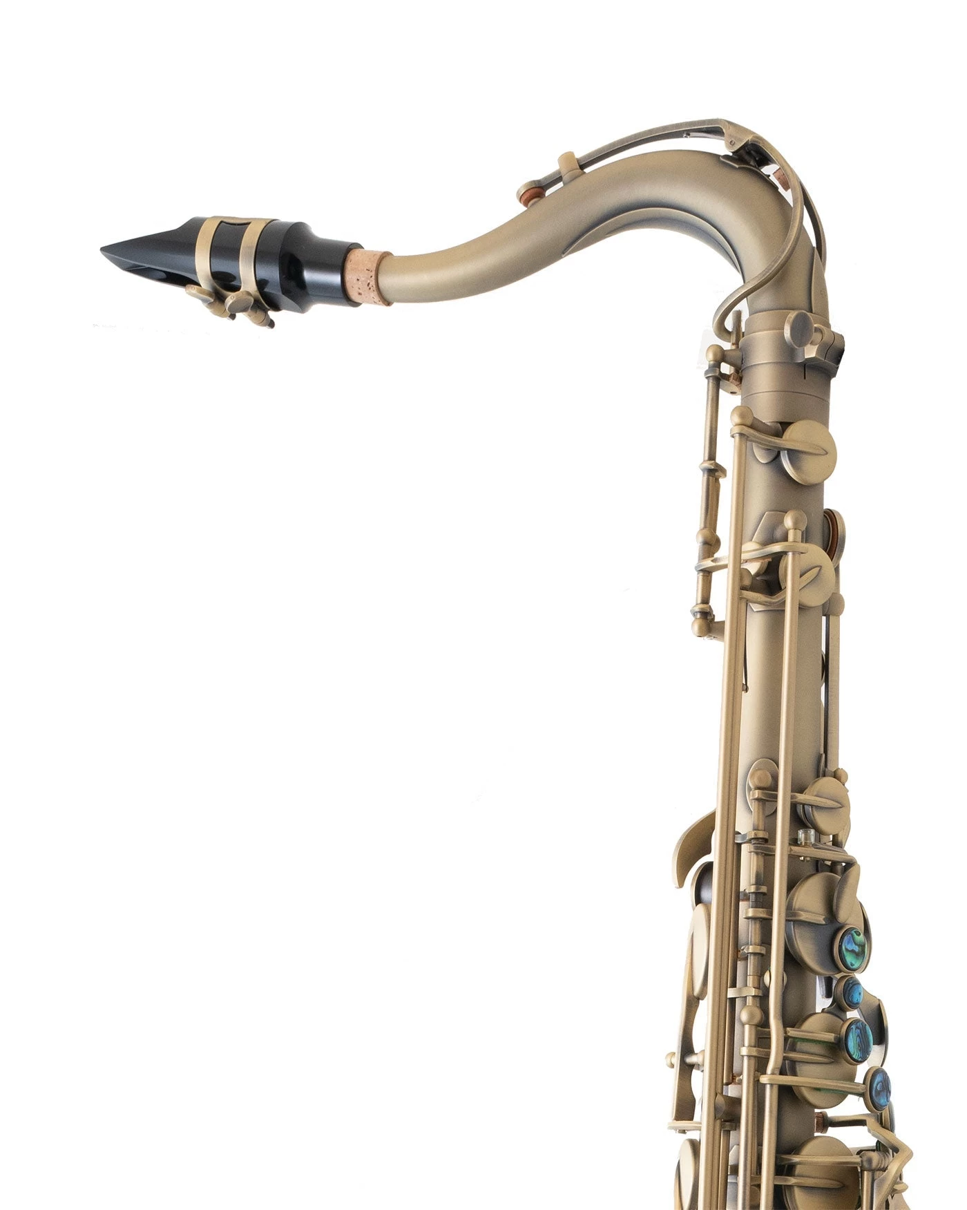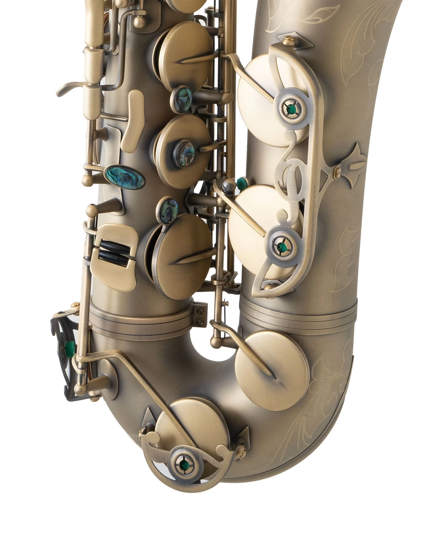 This Custom Class “Vintage Series” tenor features a vintage dark lacquer finish (DK), rolled tone holes, beautiful abalone shell key touches and high F# key. The vintage look is in keeping with the vintage tone this model is famous for. The larger bell further encourages a full bodied and warm tone.